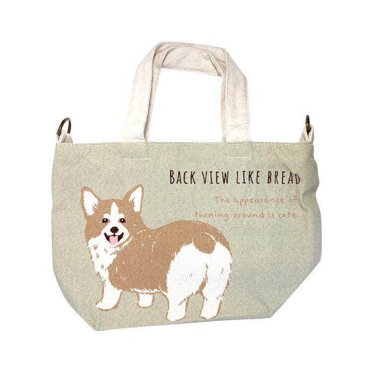 お散歩 ミニ トートバッグ ショルダー 2way ソラふりむき 33081 犬 コーギー キャンバス トート 帆布 サブバッグ ランチバッグ 散歩 ポケット付き ペットボトルホルダー付き | MORIS' online store
