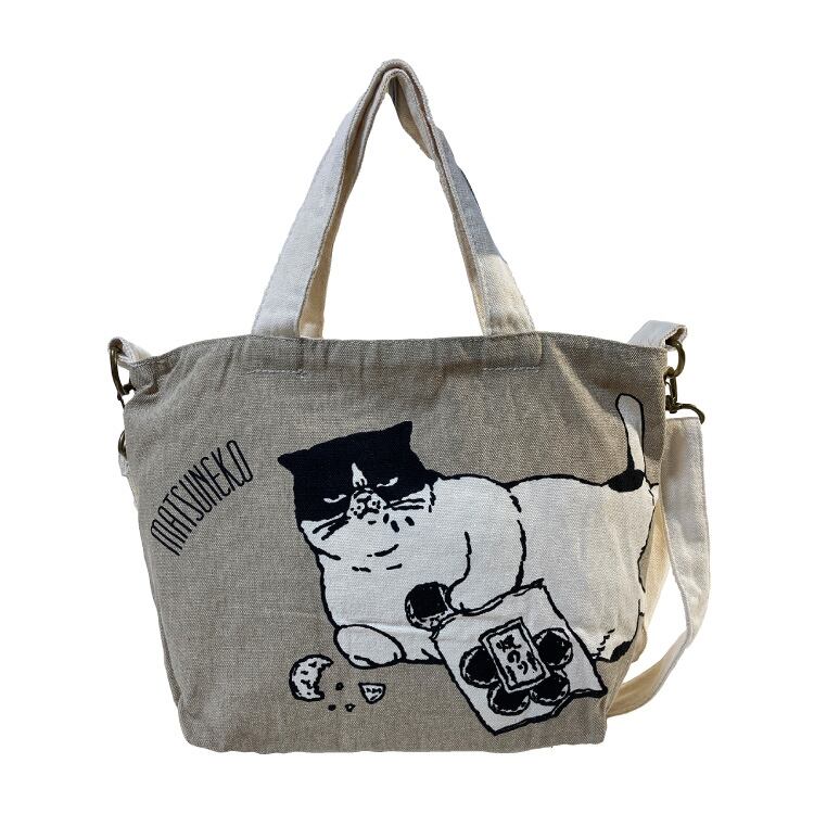 お散歩 ミニ トートバッグ ショルダー 2way マツネコぐうたら 33084 猫 雑種 キャンバス トート 帆布 サブバッグ ランチバッグ 散歩 ポケット付き ペットボトルホルダー付き | MORIS' online store