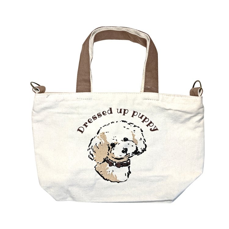 お散歩 ミニ トートバッグ ショルダー 2way トイプードル 33064 犬 ミニチュアシュナウザー キャンバス トート 帆布 サブバッグ ランチバッグ 散歩 ポケット付き ペットボトルホルダー付き | MORIS' online store
