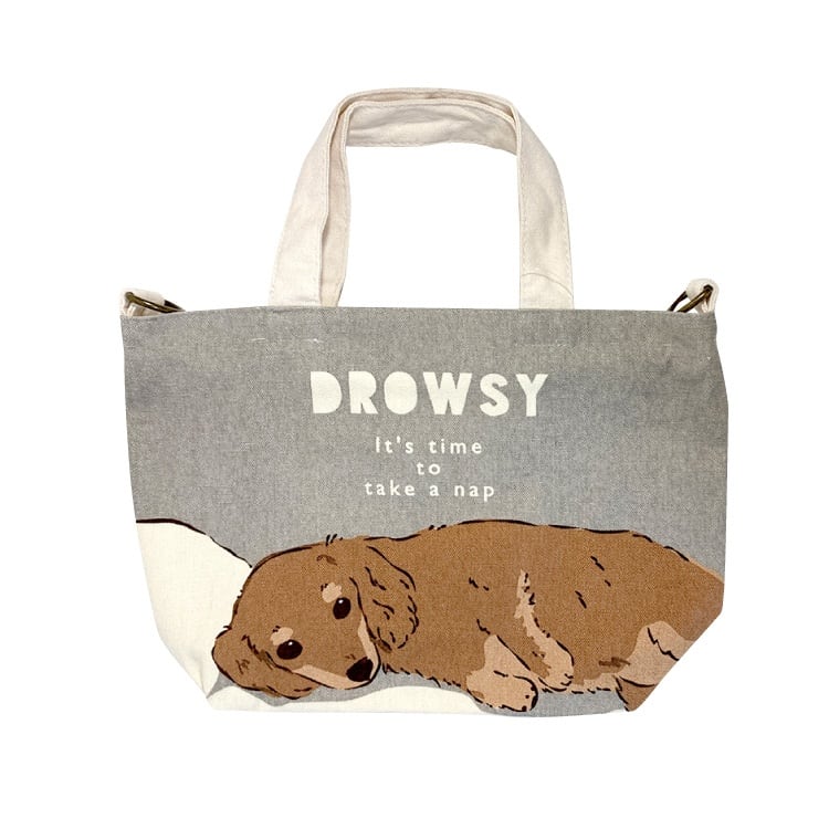 お散歩 ミニ トートバッグ ショルダー 2way カールGY 33076 犬 ダックスフンド ダックスフント キャンバス トート 帆布 サブバッグ ランチバッグ 散歩 ポケット付き ペットボトルホルダー付き | MORIS' online store
