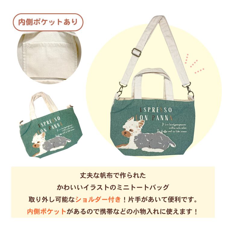 お散歩 ミニ トートバッグ ショルダー 2way マツネコ紙袋 33086 猫 雑種 キャンバス トート 帆布 サブバッグ ランチバッグ 散歩 ポケット付き ペットボトルホルダー付き | MORIS' online store