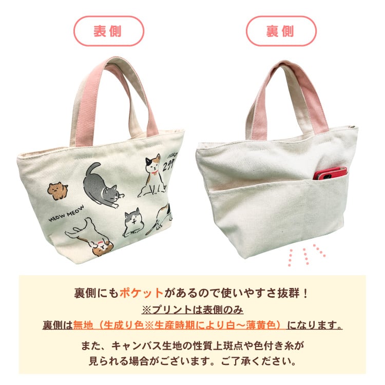 ミニ トートバッグ キャット集会GY 23801 猫 雑種 黒猫 キャンバス トート 帆布 サブバッグ ランチバッグ