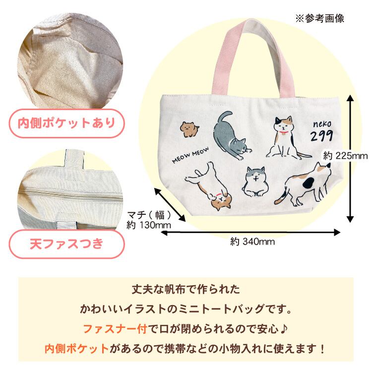 ミニ トートバッグ レオン招きPBE 23802 猫 黒猫 キャンバス トート 帆布 サブバッグ ランチバッグ