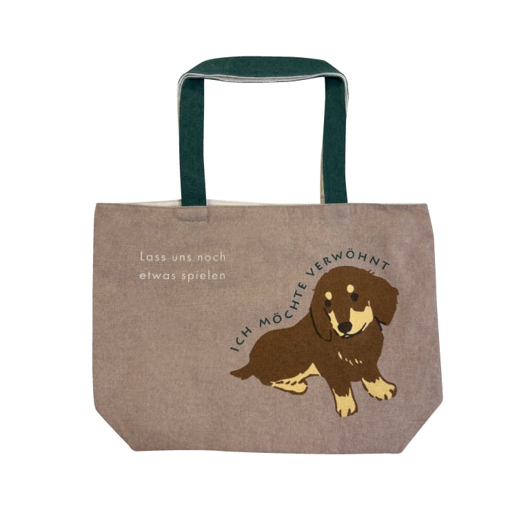 横型トートバッグ カールおすわりBE 25603A 犬 ミニチュアダックスフンド ミニチュアダックスフント キャンバス トート 帆布 サブバッグ A4