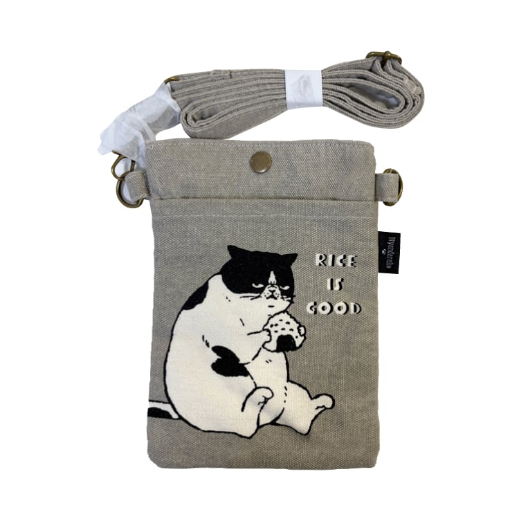スマホ ショルダー ポシェット マツネコおにぎり 33179 猫 雑種 キャンバス ショルダー スマホ収納 帆布 サブバッグ 散歩 ポケット付き ショルダーバッグ