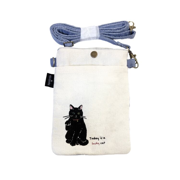 スマホ ショルダー ポシェット レオンひょっこりBL 56800 猫 黒猫 キャンバス ショルダー スマホ収納 帆布 サブバッグ 散歩 ポケット付き ショルダーバッグ