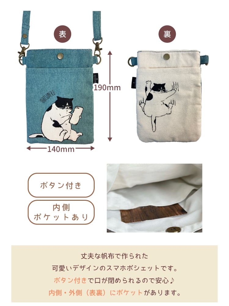 可愛いイラストデザインの帆布スマホショルダーバッグ