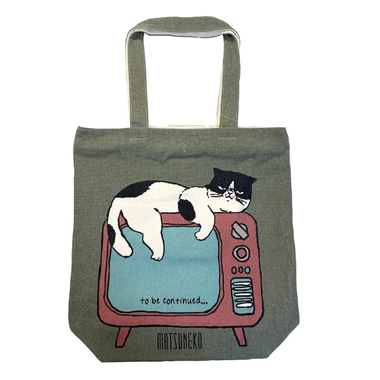 縦型 A4 トートバッグ マツネコテレビ KA 28021A 猫 雑種 キャンバス トート 帆布 サブバッグ A4