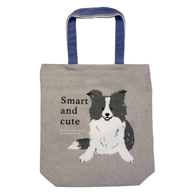 縦型 A4 トートバッグ ノアおすわりGYBE 26027A 犬 ボーダーコリー キャンバス トート 帆布 サブバッグ A4