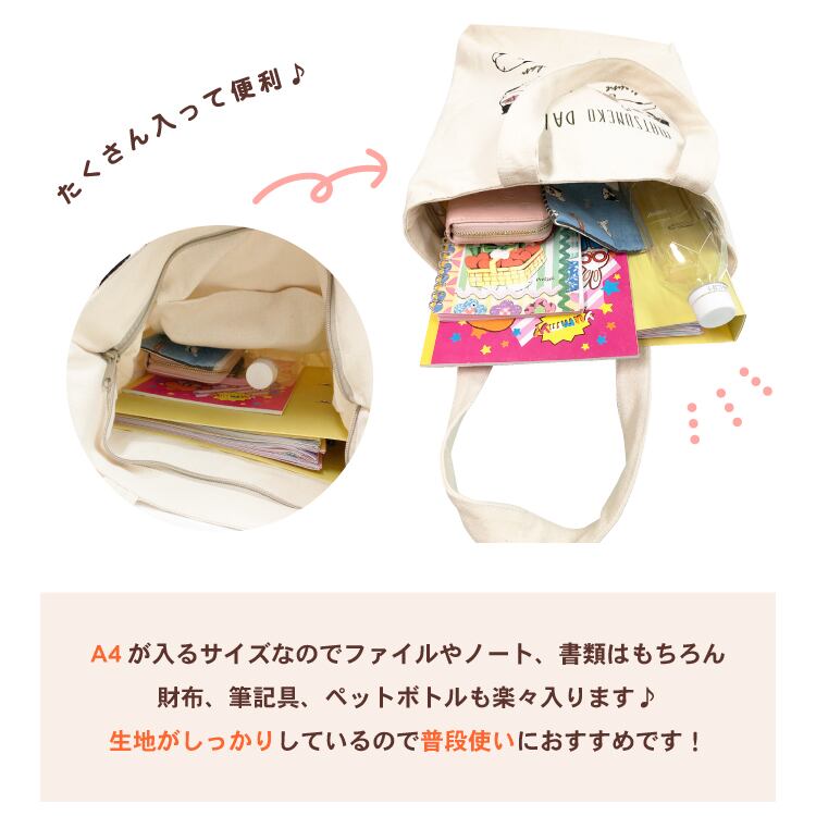 A4サイズが入るファスナー付きトートバッグ
